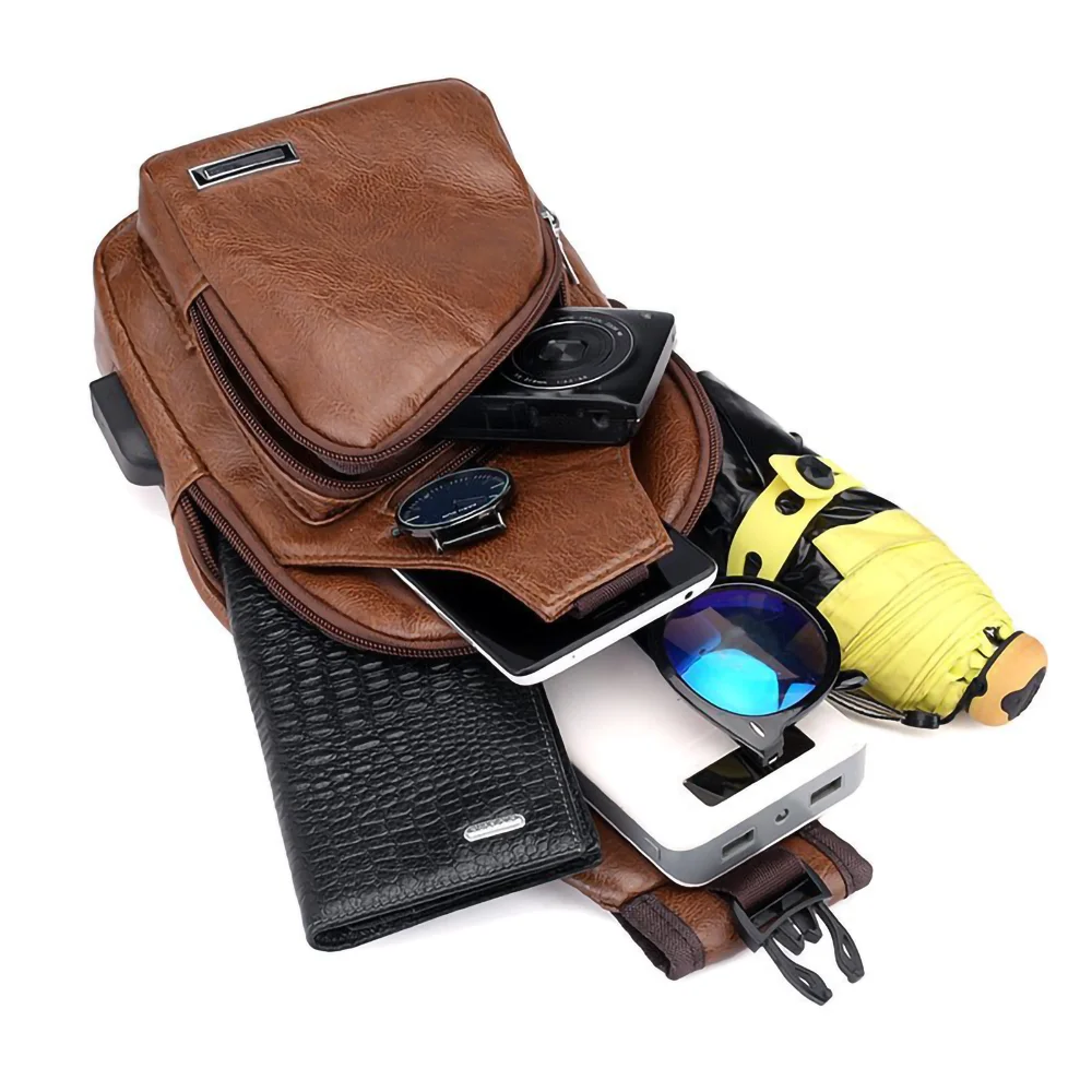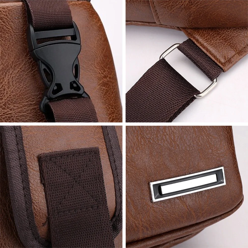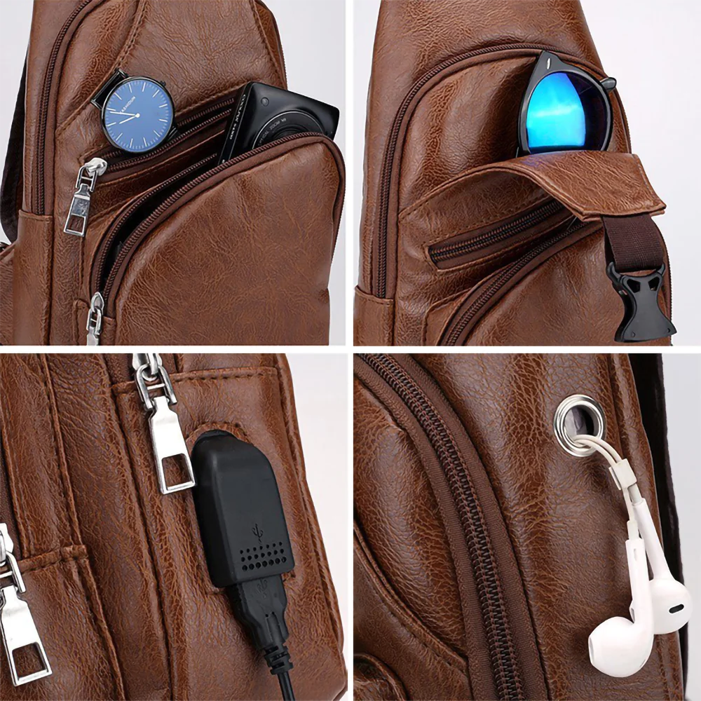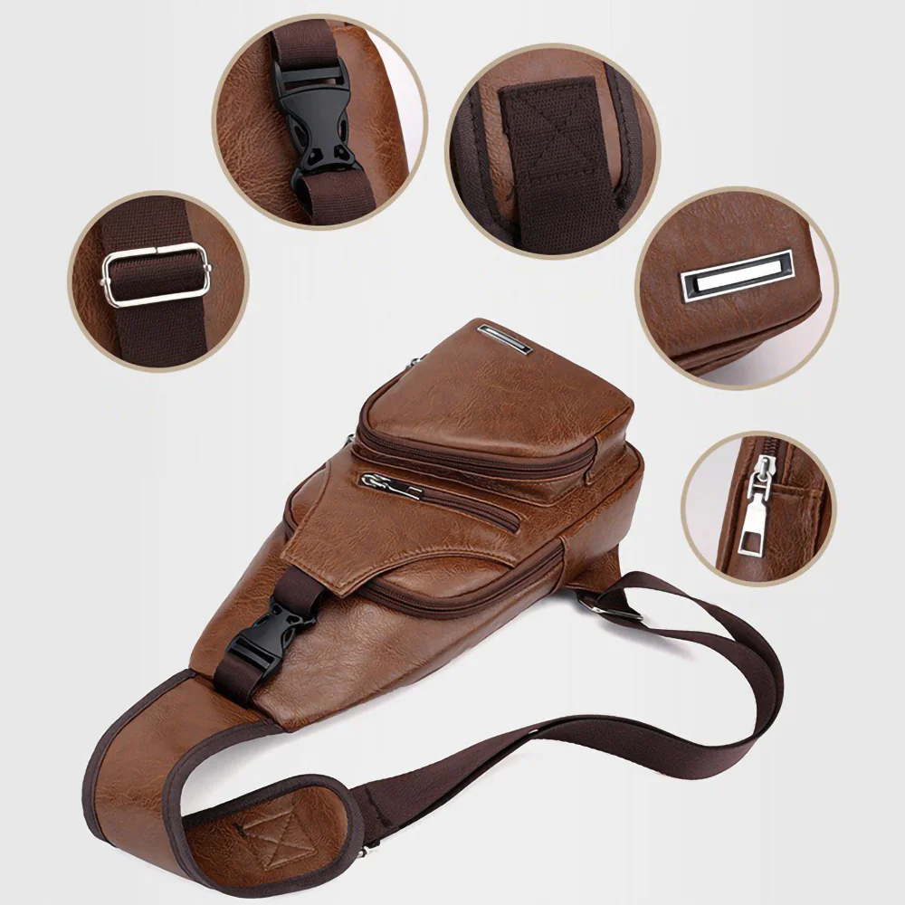 The Safari Bag combines stylish design with practical features. Made from durable, water- and scratch-resistant synthetic leather, it suits daily use and travel. It includes an external USB charging port and headphone slot, plus spacious compartments for efficient organization. The adjustable strap allows for comfortable shoulder or chest wear—ideal for men seeking functionality and style.