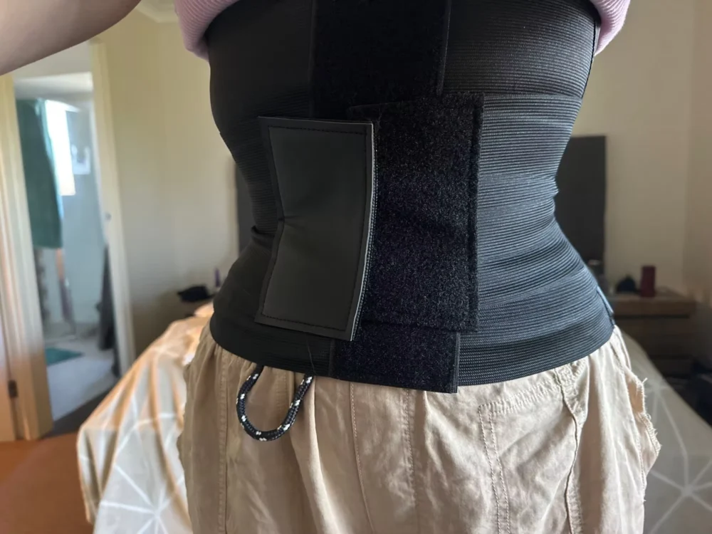 Soft and flexible, the belt adapts to daily movements and fits discreetly under clothing. Adjustable fasteners ensure a snug fit for both workouts and daily activities.