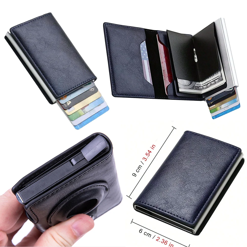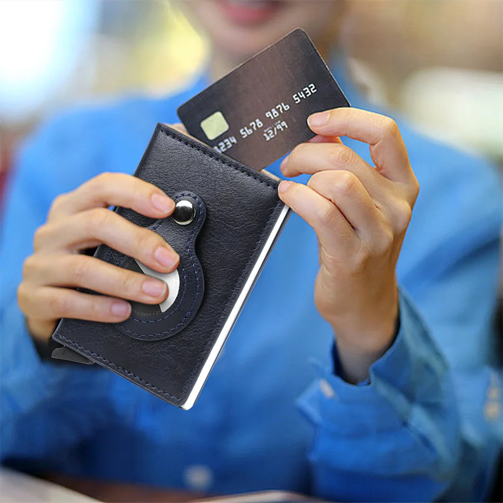 The SmartTrack Wallet offers a modern, slim design ideal for daily use. Weighing only 80g and sized compactly, it holds 5–7 cards with a quick-eject system and a built-in money clip. Made of waterproof PU leather, it features a dedicated AirTag pocket for easy tracking and RFID-blocking technology for digital protection. A strong magnetic closure ensures content security.